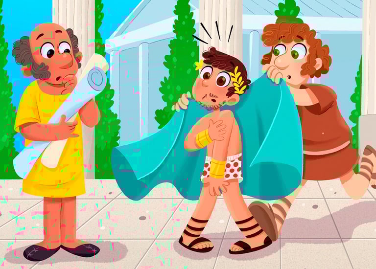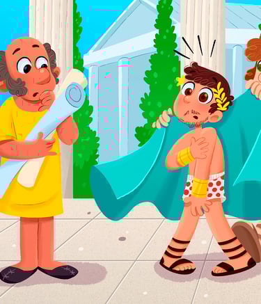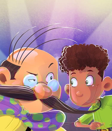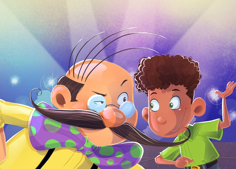 Para o seu livro de história, podemos produzir ilustrações com um tom mais sério, sem perder a essência do estilo cartoon